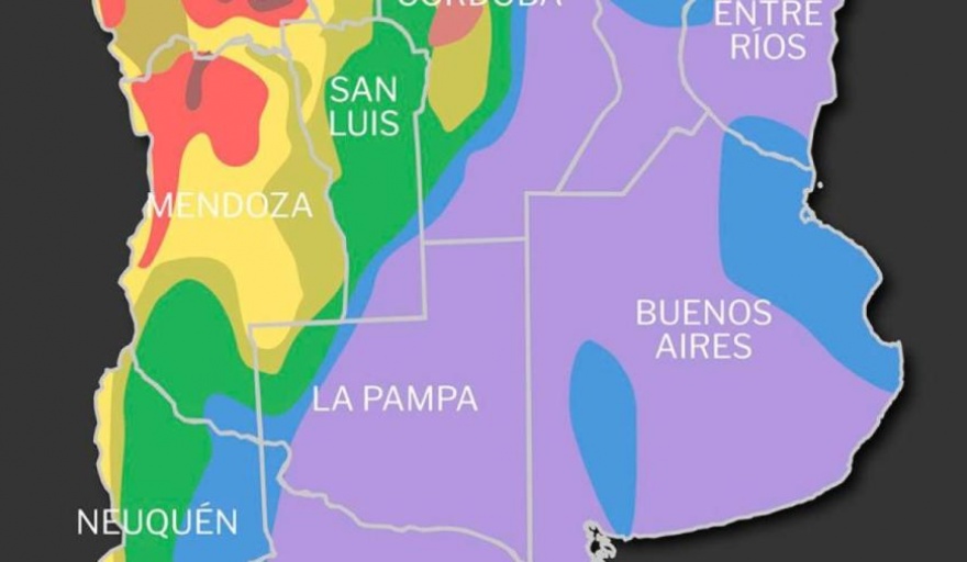 "Como ejemplo puede decirse que la zona 4, que es la de mayor sismicidad, se ubica entre el norte de Mendoza y el sur de San Juan y los riesgos sísmicos disminuyen hacia el este del territorio nacional”, precisó.